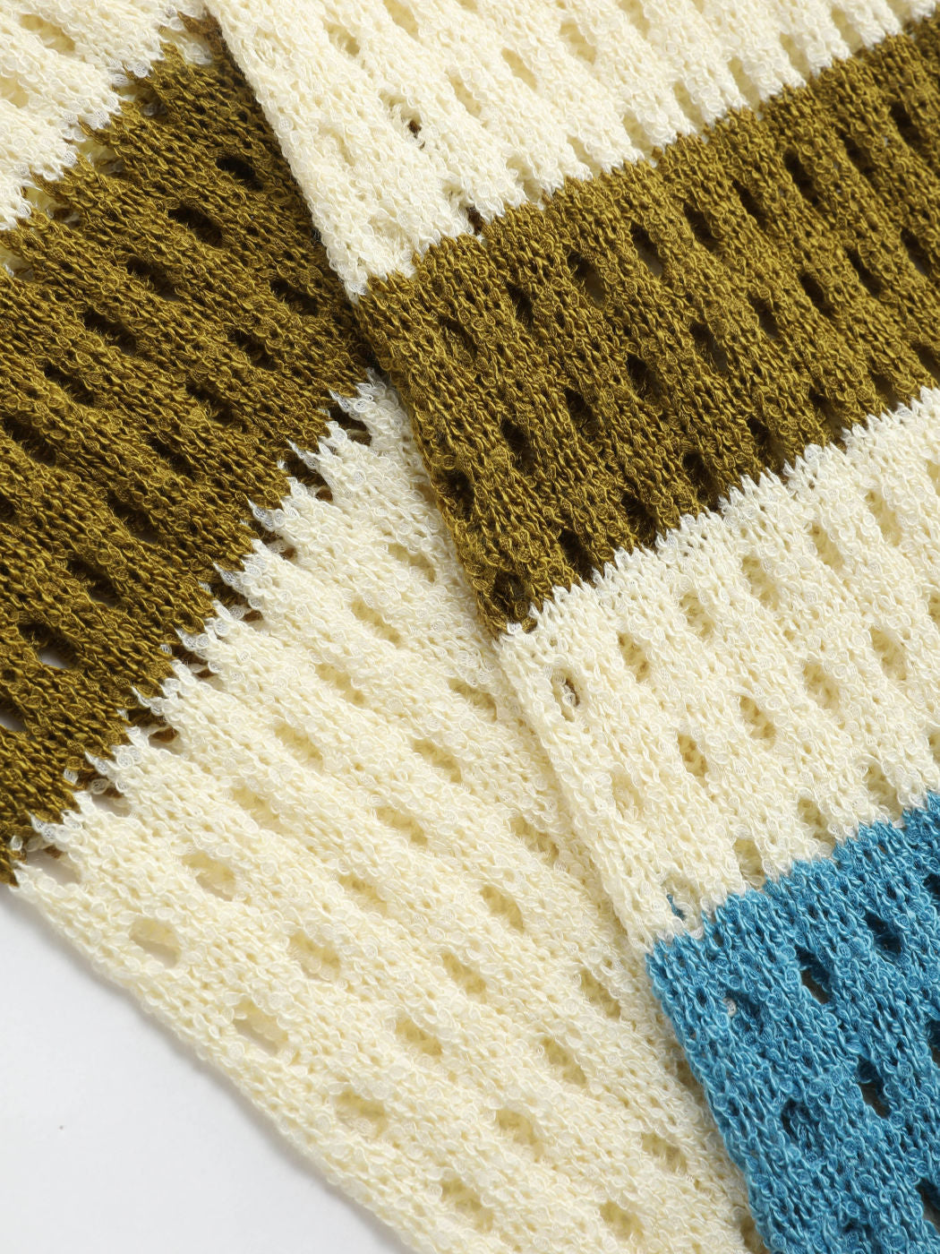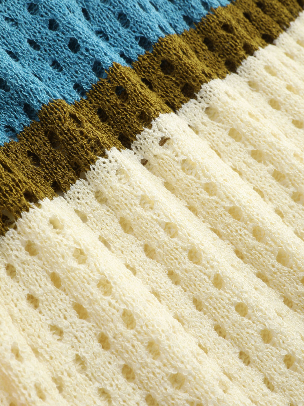2023 Contrasting Color Stitching Long -sleeved Hollow Sweater Short Waist Knit Sweater